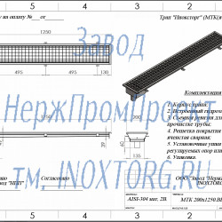 Мелкозаглубленный нержавеющий трап для кухни 200х1250мм ( или с другими размерами) с нижним выпуском устанавливается там, где имеются ограничения по монтажной глубине, но имеется возможность реализовать присоединение приемной трубы под полом, например, этажом ниже.